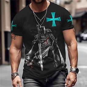 Bărbați Crucea Templieră Imprimeu Grafic Soldat Tricou Tricouri creștine Manșon scurt Tricou Tipărire 3D Stil Nautic Cămașă Epocă Sport Designer În aer liber Stradă Zilnic Negru / Gri Negru + Negru