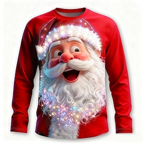 Crăciun Bărbați Mos Craciun Amuzant Tricou Manșon Lung Tricou Tipărire 3D Stil Nautic Cămașă Modă De Bază #D Stradă Casual Zilnic Albastru piscină Albastru 2# Roșu-aprins Vară Primăvară Îmbrăcăminte