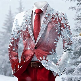 Crăciun Bărbați Fulg zăpadă Jachetă blazer Comfortabil Artistic Casual Îmbrăcăminte de seară de petrecere Zilnic Festival Imprimare 3D Nasturi Primăvară Toamnă Iarnă Cresătură Manșon Lung Negru