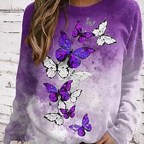 Pentru femei Hanorace Imprimeu Grafic Fluture Modă Casual Manșon Lung Stil Nautic Topuri obișnuite Stradă Zilnice Albastru piscină Mov Toamnă Iarnă