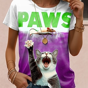 Hanorac pentru femei grafică animal pisică activă drăguță casual mânecă lungă gât rotund topuri regulare stradă casual de vacanță imprimeu violet brun verde primăvară toamnă iarnă primăvară