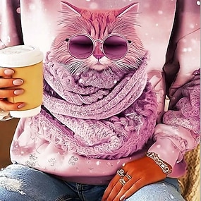 Pentru femei Hanorace Imprimeu Grafic Animal Pisica Casual Manșon Lung Stil Nautic Topuri obișnuite Casual Stradă Zilnice Roz Îmbujorat Mov Maro Trifoi Primăvară Toamnă Iarnă