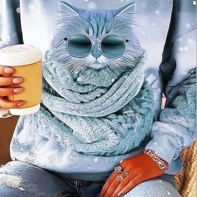 hanorac de damă cat street îmbrăcăminte zilnică imprimeu casual gâtul turn cu mânecă lungă micro-elastic toamna iarnă confort țesătură moale respirabilă