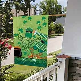 Ziua Sfântului Patrick, steag de grădină în aer liber, trifoi irlandez, decorațiuni de petrecere, la mulți ani de Ziua Sfântului Patrick, pentru curte, terasă, gazon, sărbătoare