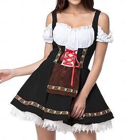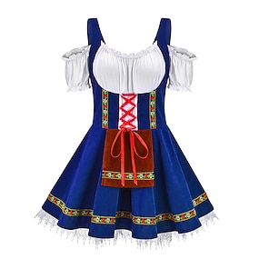 Oktoberfest Peteci Dirndl Trachtenkleader Servitoare Sexy bavareză rochie de vacanță Pajiști Pentru femei Festivalul de Bere Costum Oktoberfest Dirndl Pânză în stil tradițional Rochie Șosete Cordeluțe