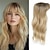 Acoperiș de păr 360° 3D pentru femei cu coroană subțire, păr ondulat și creț, lungime de 50 cm, breton cu clipsuri, maro închis, castaniu amestecat, 50 cm, breton franțuzesc