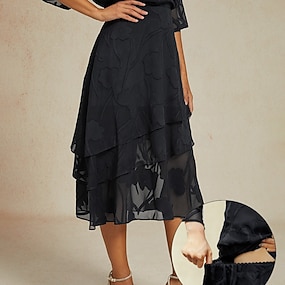 Pentru femei Elegant Casual Midi Talie medie Fuste Floral Dantelă Bufantă Tiv neregulat Micro-elastic Dată Casul / Zilnic Negru Vară Șifon