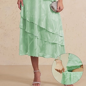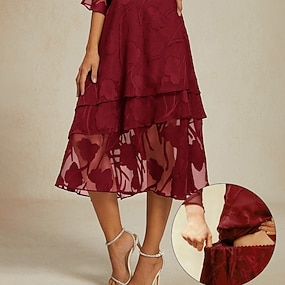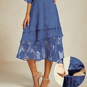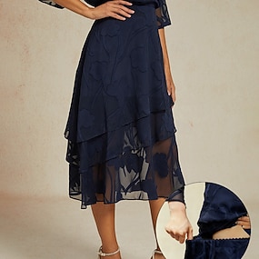 Pentru femei Elegant Midi Talie medie Fuste Floral Multistratificat Curea elastică Dantelă iluzie Strech Zilnic Ziua Îndrăgostiților Wedgewood Vară Poliester