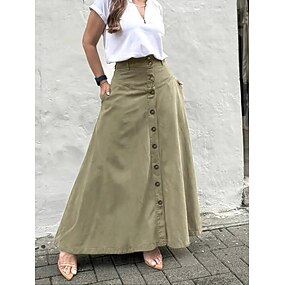 Pentru femei Fustă de vacanță Modă Casual Maxi Talie Înaltă Fuste Simplu Buzunar Micro-elastic Zilnic Stradă Negru Maro Verde Gri Vară Poliester