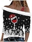 Crăciun Pentru femei Bluză Fulg zăpadă Pahar de vin Stilat Casual Manșon Lung De Pe Umăr Topuri obișnuite Zilnic Concediu Negru Alb Roșu Vin Roșu-aprins Primăvară Toamnă Iarnă