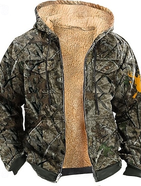 Bărbați camuflaj Culoare Camuflaj Cerb Lână Hanorac cu Glugă Σακάκι Hanorca Modă Misto Zilnic Vintage Retro Manșon Lung Capișon Vânătoare Roșu-aprins Albastru piscină Trifoi Verde Militar Fermoar