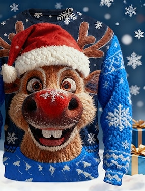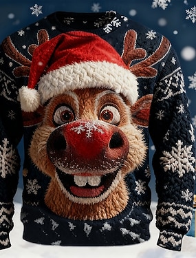 Crăciun Bărbați Amuzant Hanorca Misto Petrecere #D Manșon Lung Stil Nautic Vacanță Petrecere Cadou Albastru piscină Negru Roșu-aprins Trifoi Crewneck #D Toate Sezoanele Designer S M L XL XXL XXXL