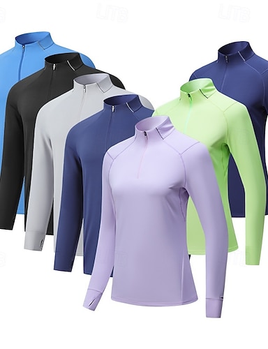 Pentru femei Hanorca Top de alergare Tricou POLO Κοντομάνικο για τρέξιμο Zvelt Quarter Zip Manșon Lung Topuri Mată Uscare rapidă Ușor Elastic Respirabil Tenis Golf Alergat Echipament sportiv