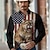 Bărbați Animal Lup Drapelul SUA american Cămașă Cămașă occidentală Camașă cu nasturi Manșon Lung Vintage Retro Concediu Casul / Zilnic Primăvară Toamnă Răsfrânt Imprimare 3D cămăși cu guler Negru 1