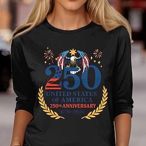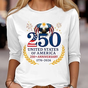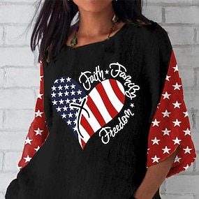 Pentru femei Tricou Tee Top Imprimeu Steagul american Modă Stilat Clasic Manșon Lung Stil Nautic Topuri obișnuite Zilnic Ieșire Sfârșit de săptămână Albastru piscină Negru Alb Roșu-aprins Gri