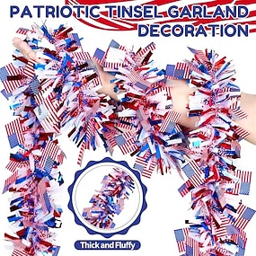 Ghirlandă patriotică de 66 de picioare cu steaguri americane, groasă &Ghirlandă metalică pufoasă, roșu, alb, albastru, pentru Ziua Independenței de 4 iulie, decorațiuni pentru Ziua Memorială,