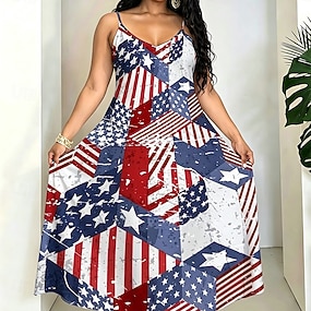 Ziua Independenței Americane Pentru femei Rochie Lunga Rochie Maxi Rochie Slip Rochie Fit And Flare Vacanță Casual Stiluri de Plajă Un umăr rece Concediu Fit regulat Grafic Steag Fără manșon Cu