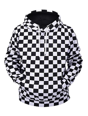 Bărbați Grafic Carou Carouri Hanorac cu Glugă Hanorace Hanorca Casual Mare si inalt Atletic Manșon Lung Capișon Zilnic Sport Haine de strada Negru și Alb Imprimeu Vară Primăvară Designer S M L XL XXL