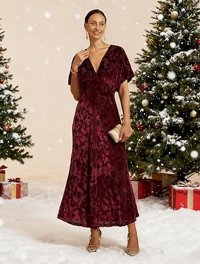 Pentru femei Rochii Midi Rochie de catifea Rochie de Cocktail Rochie A line Elegant Gril pe Kamado cocktail Serată Invitat la nunta Petrecere cu cocktail Fit regulat Floral Manșon Jumate În V Roșu Vin