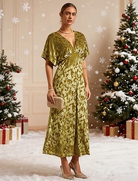 Pentru femei Rochii Midi Rochie de catifea Rochie de Cocktail Rochie A line Elegant Gril pe Kamado cocktail Serată Invitat la nunta Petrecere cu cocktail Fit regulat Floral Manșon Jumate În V