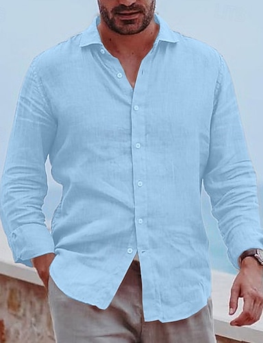 Bărbați Cămașă casual Cămașă din bumbac și in Camașă cu nasturi Culoare solidă / simplă Vacanță Stradă Negru Alb Roz Îmbujorat Albastru celest Manșon Lung Rever Toate Sezoanele Îmbrăcăminte Nasturi