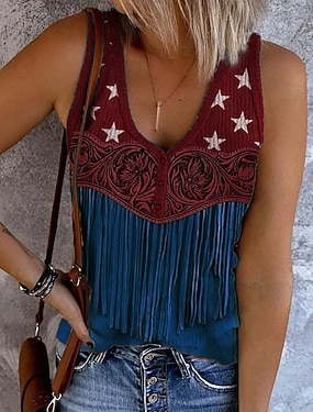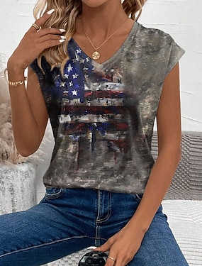 Ziua Independenței Americane Pentru femei Bluză Imprimeu Grafic Steag Epocă Tropical Stilat Fără manșon În V Topuri obișnuite Zilnic Negru Alb Bej Vară Primăvară