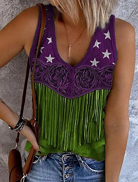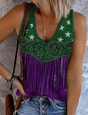 Top de camiserie femei top boho top western cu grafic floral bohemia vintage casual fără mâneci guler în U topuri de zi de vacanță ieșiri imprimeu negru khaki gri vară