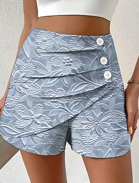 Pentru femei chinez Pantaloni Scurți Vacanță Epocă Stilul etnic Scurt Talie Înaltă Floral Grafic Plisată Micro-elastic Zilnic Vacanță Stradă Violet Albastru ou de Măcăleandru Roșu-aprins Trifoi Var