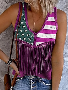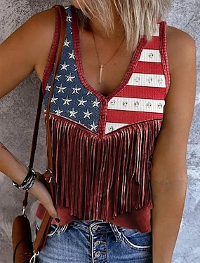 Ziua Independenței Top Tank Patrioată Femei Steag Rock Plajă Fără Mâneci Fără Mâneci Gât În V Normal Topuri Zilnice Uniforme Club Ieşire Vin Albastru Albastru Praf Vară Primăvară