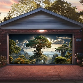 copacul vieții uriaș fantezie antic copac casă lună plină peisaj montan ușă de garaj banner mural exterior casă acoperire decor acasă natură pădure peisaj petrecere fundal