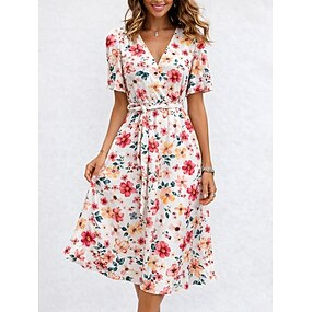 Pentru femei Rochii Midi Rochie A line Rochie tip Bandage Rochie cu Volane Vacanță Casual Concediu Dată Fit regulat Floral Grafic Manșon scurt În V Roz Îmbujorat Mov Trifoi Bej Vară Primăvară