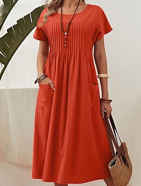 Pentru femei Mărime EU / US Rochii Midi Rochii de in bumbac Rochie casual Elegant Sexy Casual Mâneci Lejere Casă Muncă Stradă Potrivire Largă Culoare solidă Manșon scurt Stil Nautic Portocaliu Verde