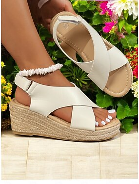 Sandale elegante albe cu platformă țesută pentru femei - sandale confortabile cu platformă încrucișată, pentru hoteluri de lux, la piscină sau stațiuni de plajă &ținute de vacanță de vară