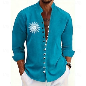 Bărbați Soare Έθνικ Cultura indiană Cămașă Cămașă cu guler ridicat Manșon Lung Vintage Retro Casual Vacanță Primăvară Toamnă Guler mandarin Guler Tunică Buton în jos Cămașă de in Albastru piscin