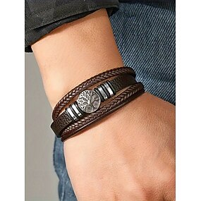 Brățară bărbătească din piele împletită, în stil boem, vintage, cu închidere cu cataramă și decor cu șnur împletit - manșetă western reglabilă pentru ținute casual și cadouri
