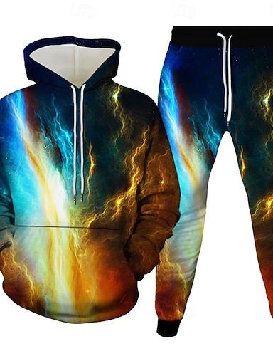 Bărbați Galaxie 2 buc Seturi de hanorace 3D Trening Pulover cu glugă Manșon Lung Pantaloni lungi Capișon Casul Zilnic Îmbrăcăminte Atletică Imprimare 3D Primăvară Toamnă Iarnă Albastru ou de