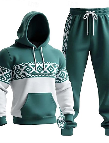 Bărbați Geometică 2 buc Seturi de hanorace 3D Trening Pulover cu glugă Manșon Lung Pantaloni lungi Capișon Stilul etnic Casul Zilnic Îmbrăcăminte Atletică Imprimare 3D Primăvară Toamnă Iarnă Trifoi