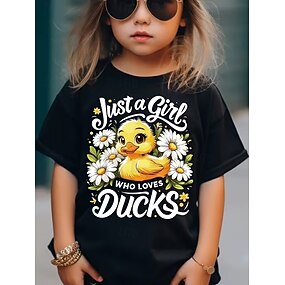 100% Bumbac Copii Fete Negru Grafic Rață Tricou Stil Nautic Manșon scurt Vacanță Sporturi & Exterior Zilnice Vacanță Modă Casual Imprimare Vară Primăvară