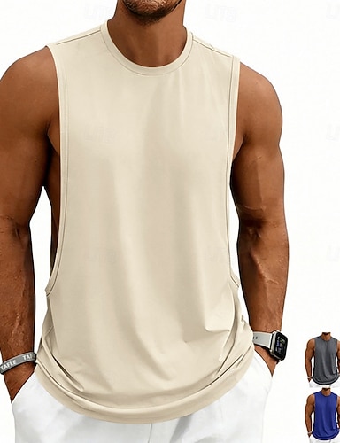 Bărbați Bluză Vestă Sub Cămașă Cămașă fără mâneci Fără manșon Scoateți gâtul Vară Primăvară Simplu Modă Clasic Comfortabil Simplu Casual Sală de Fitness Stradă Negru Alb Roșu Vin Top tricou pentru