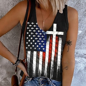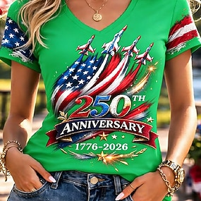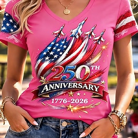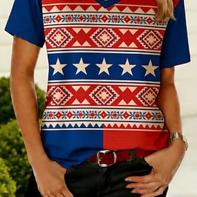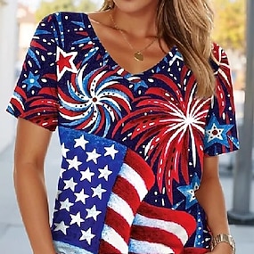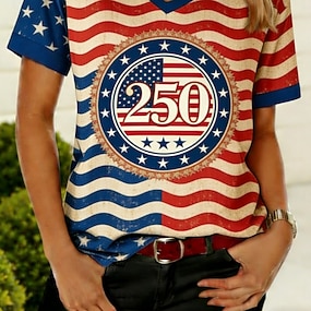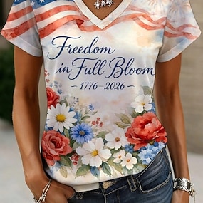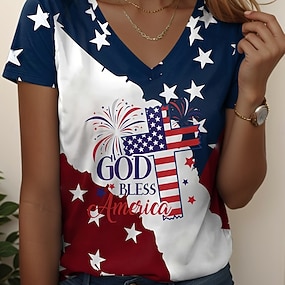 Ziua Independenței Femei Patriotic Tricou Grafic Steag Vintage Elegant Clasic Mâneci Scurte Gât în V Tops Regale de Zi cu Zi Weekend Imprimare Negru Alb Galben Albastru Vară Primăvară