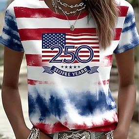 Ziua Independenței Americane Pentru femei Tricou Imprimeu Grafic Steag Scrisă Epocă Stilat Clasic Manșon scurt Stil Nautic Rotund Topuri obișnuite Zilnic Albastru piscină Negru Alb Roșu-aprins Var