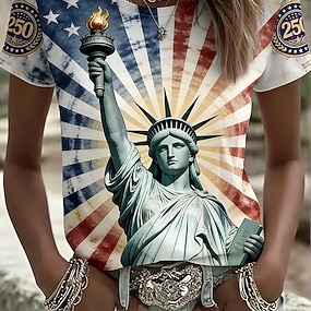 Ziua Independenței Americane Pentru femei Tricou Imprimeu Grafic Scrisă Epocă Stilat Clasic Manșon scurt Rotund Topuri obișnuite Zilnic Albastru piscină Negru Alb Roșu-aprins Vară Primăvară