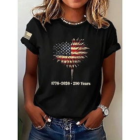 Ziua Independenței Americane Aniversar Patriotic Tricou pentru Femei Print Grafic Floral Litera Elegant Clasic Casual Manșon Scurt Guler Rotund Regular Negru Alb Roșu Vară Primăvară