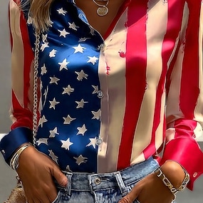 Ziua Independenței Americane Pentru femei Tricou Imprimeu Grafic Steag Stilat Clasic Casual Manșon scurt Stil Nautic Rotund Topuri lungi Zilnic Albastru piscină Negru Alb Roșu-aprins Vară Primăvară