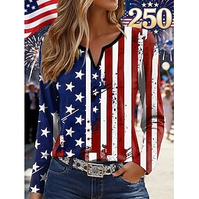 Tricou pentru femei cu grafic patriotic de Ziua Independenței Americane steag vintage stil modern mânecă lungă guler crăpat print zilnic de weekend