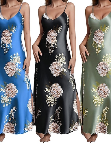 Pentru femei Camasa de noapte Casual Moale Satin Floral Fără Spate Zilnic Casă Pat Fără manșon Curele de Albastru piscină Negru Roșu-aprins Trifoi Vară Potrivire Largă