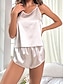 Pentru femei loungewear Set pijama Modă Simplu Casual Culoare pură Pijamale din satin mătase Talie elastică Fără Spate Pantaloni Scurți Casă Vacanță Fără manșon Curele de Negru Alb Roșu Vin Var
