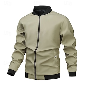 Bărbați Jachetă ușoară Oficial Casă Confortabil Buzunar minimalist Primăvară Toamnă Culoare solidă Neutru Sport & Outdoor Guler de stand Regulat Negru Trifoi Kaki Gri Jachete