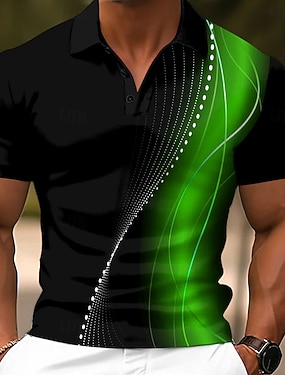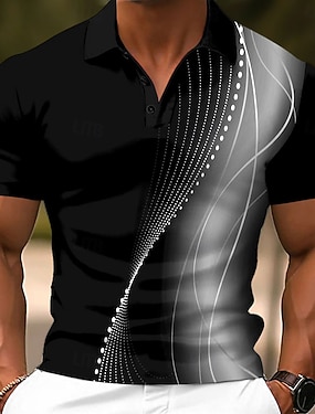 Bărbați Geometric Polo Manșon Lung Tricouri de polo Rever Casual Ocazional afaceri Îmbrăcăminte Atletică Purtare Zilnică Buzunar Imprimare 3D Nasturi Primăvară Toamnă Albastru piscină Albastru Lac