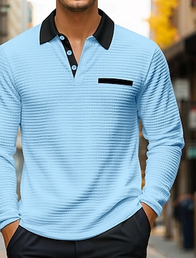 Bărbați Tricouri polo Waffle Tricou Waffle Sport exterior Ciclism Guler în picioare Quarter Zip Manșon Lung Modă Modern Culoare solidă Tricotat Primăvara & toamnă Fit standard Albastru Deschis Negru